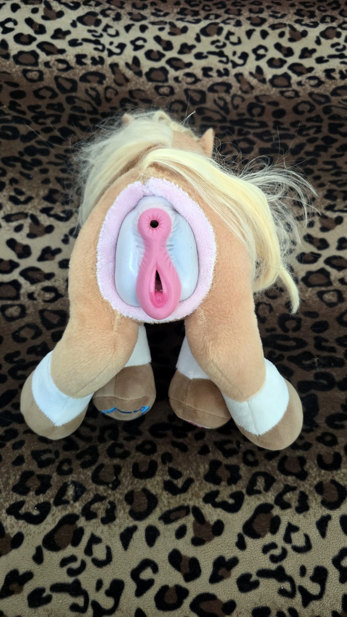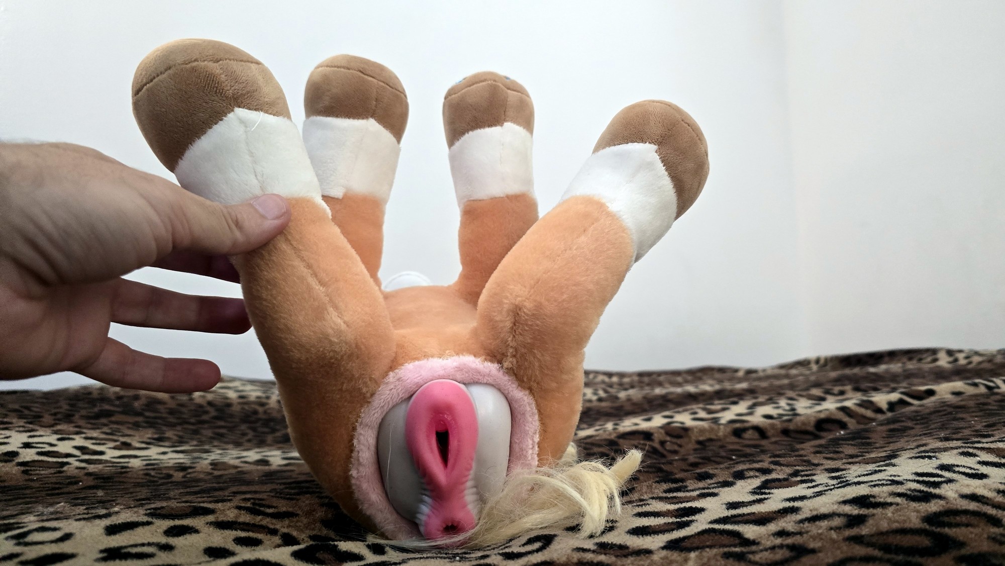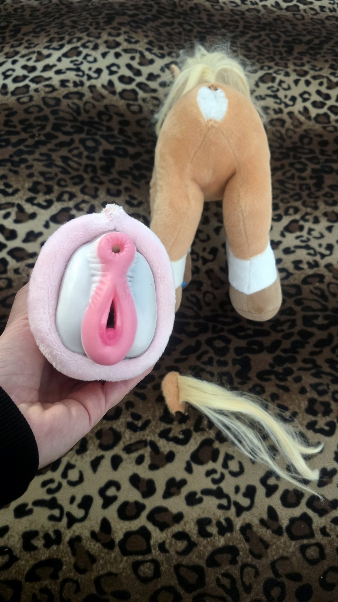 Modded with an SPH using pink lush plush and sized to fit this toy “Rare Beast Horse Male Masturbator Cup with Anal Vagina Dual Tunnels, Realistic Textured Stroker Adult Sex Toys for Men Penis Stimulation Masturbation Pleasure (White Black) “ A tail transplant was preformed in order for proper placement and sizing of the SPH.
