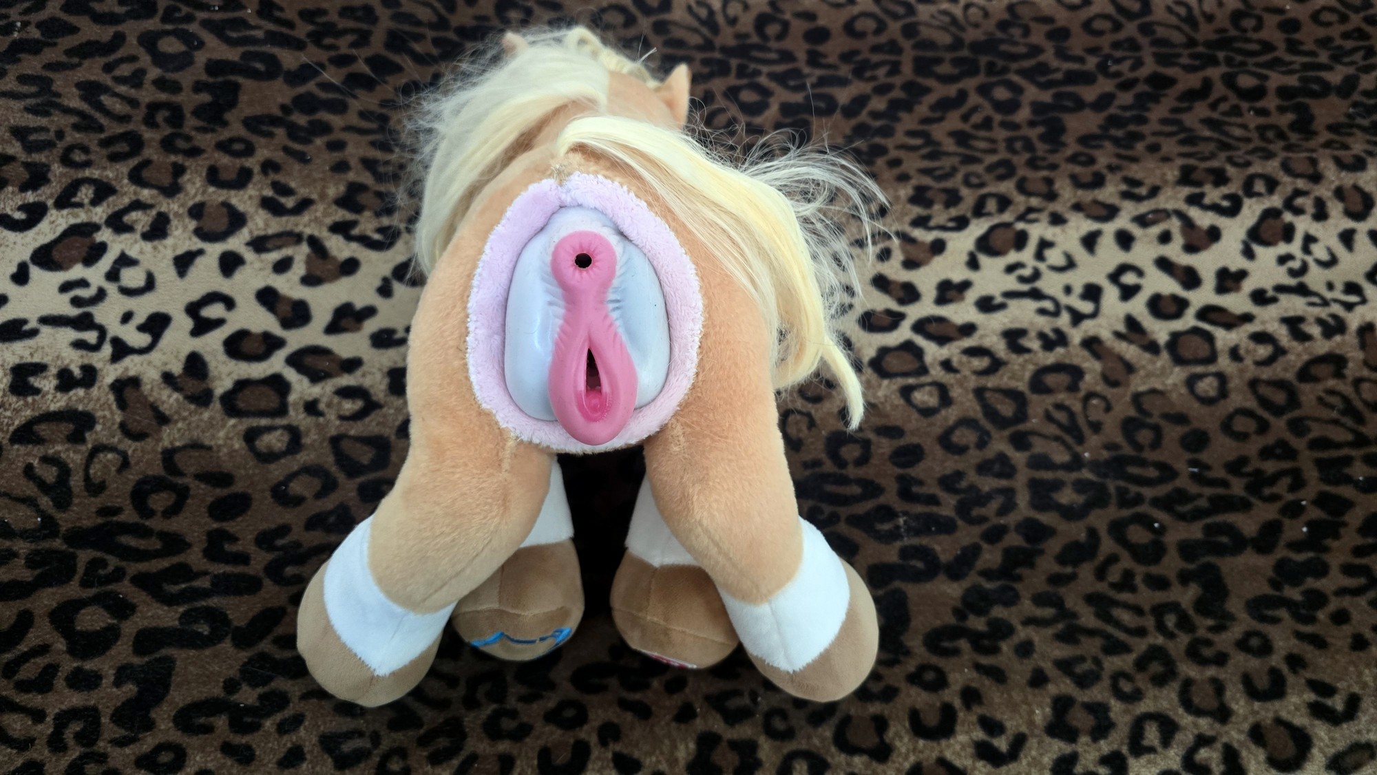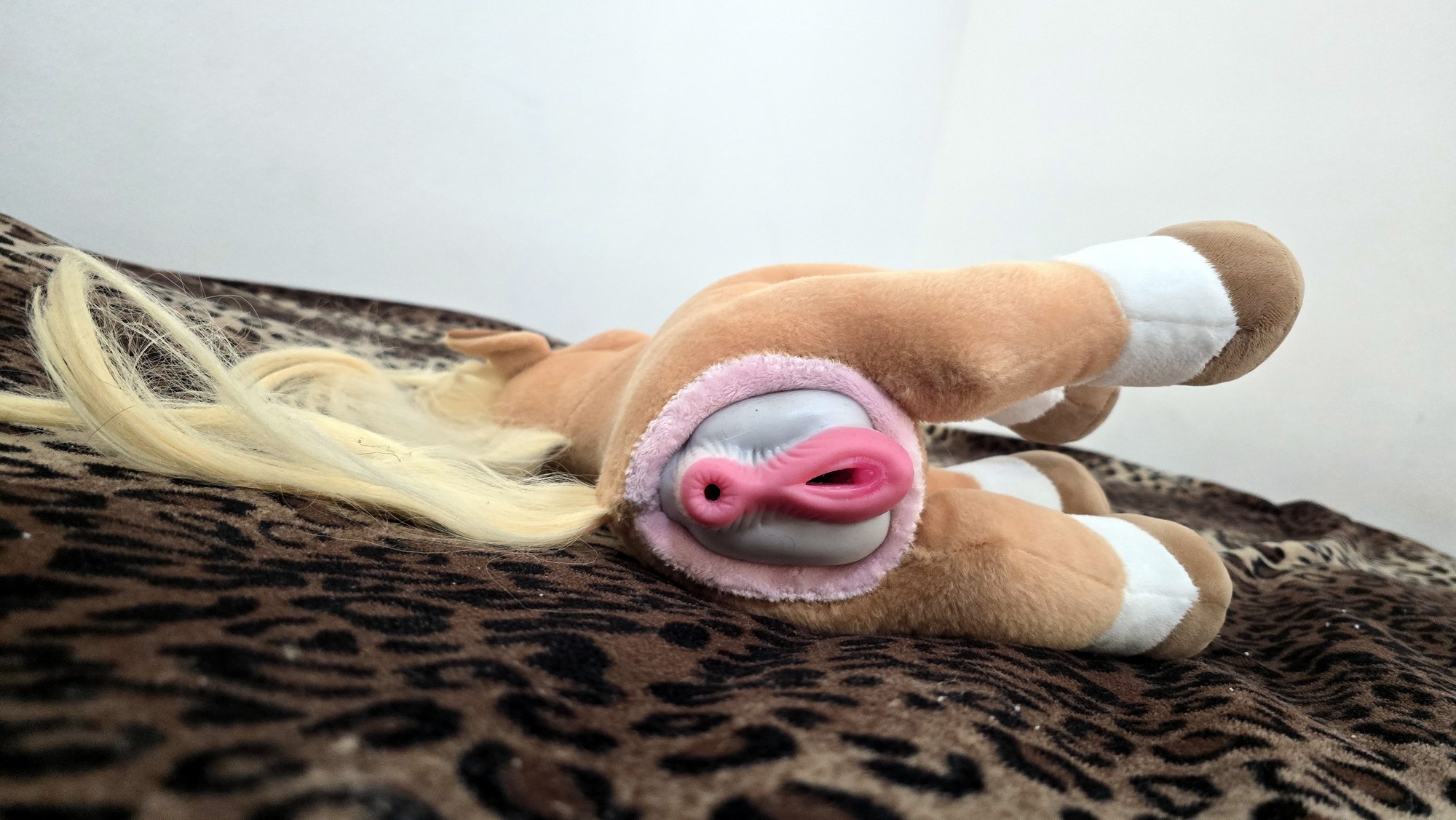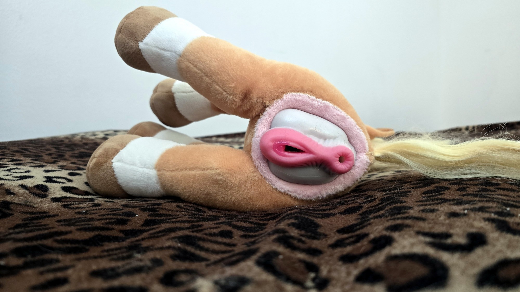 Modded with an SPH using pink lush plush and sized to fit this toy “Rare Beast Horse Male Masturbator Cup with Anal Vagina Dual Tunnels, Realistic Textured Stroker Adult Sex Toys for Men Penis Stimulation Masturbation Pleasure (White Black) “ A tail transplant was preformed in order for proper placement and sizing of the SPH.