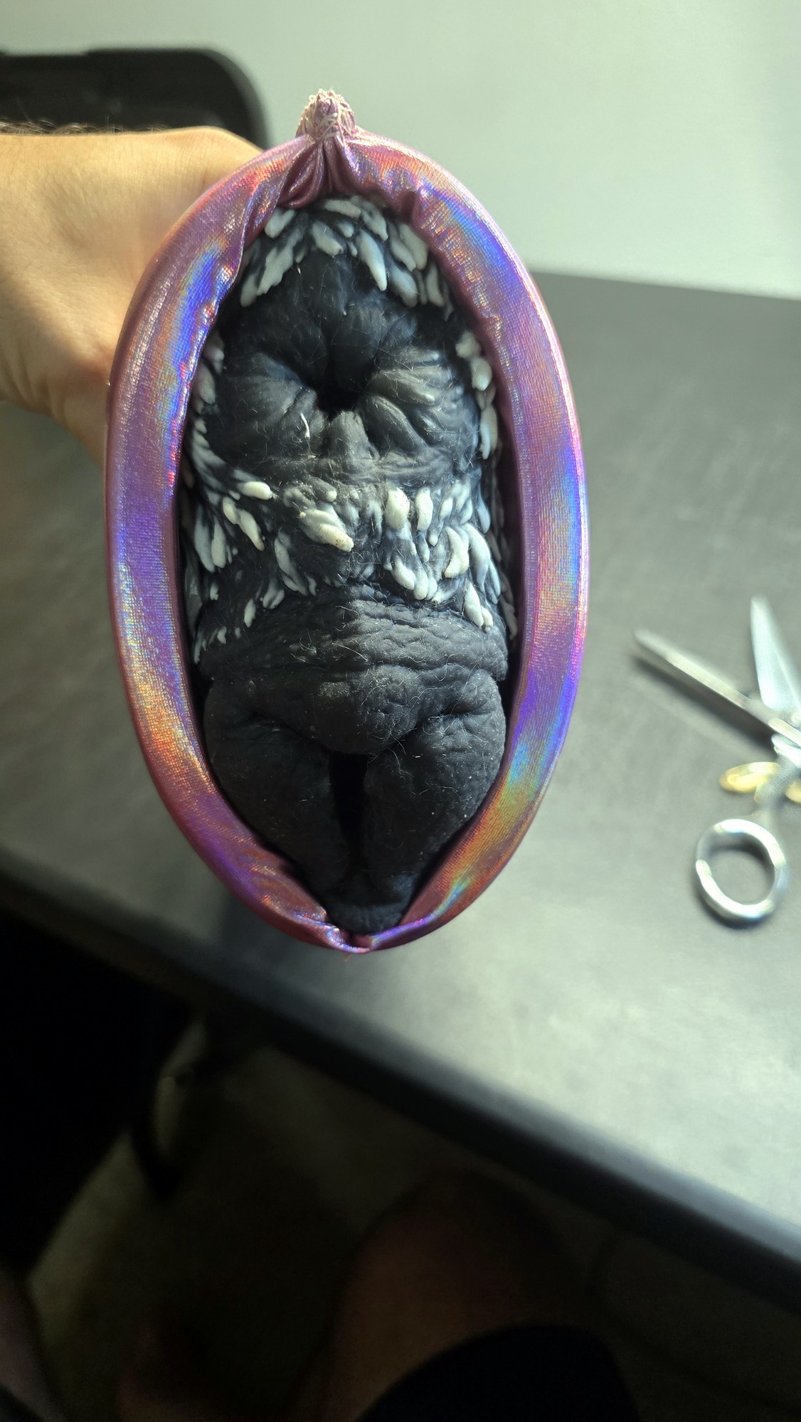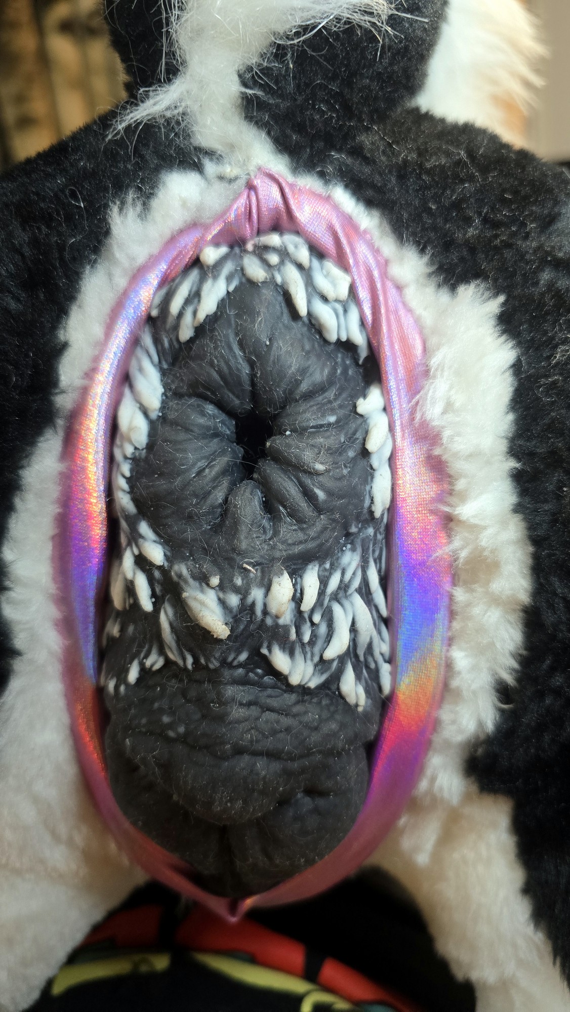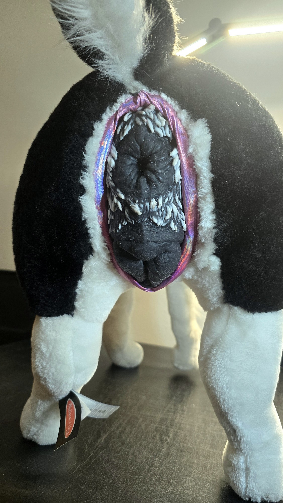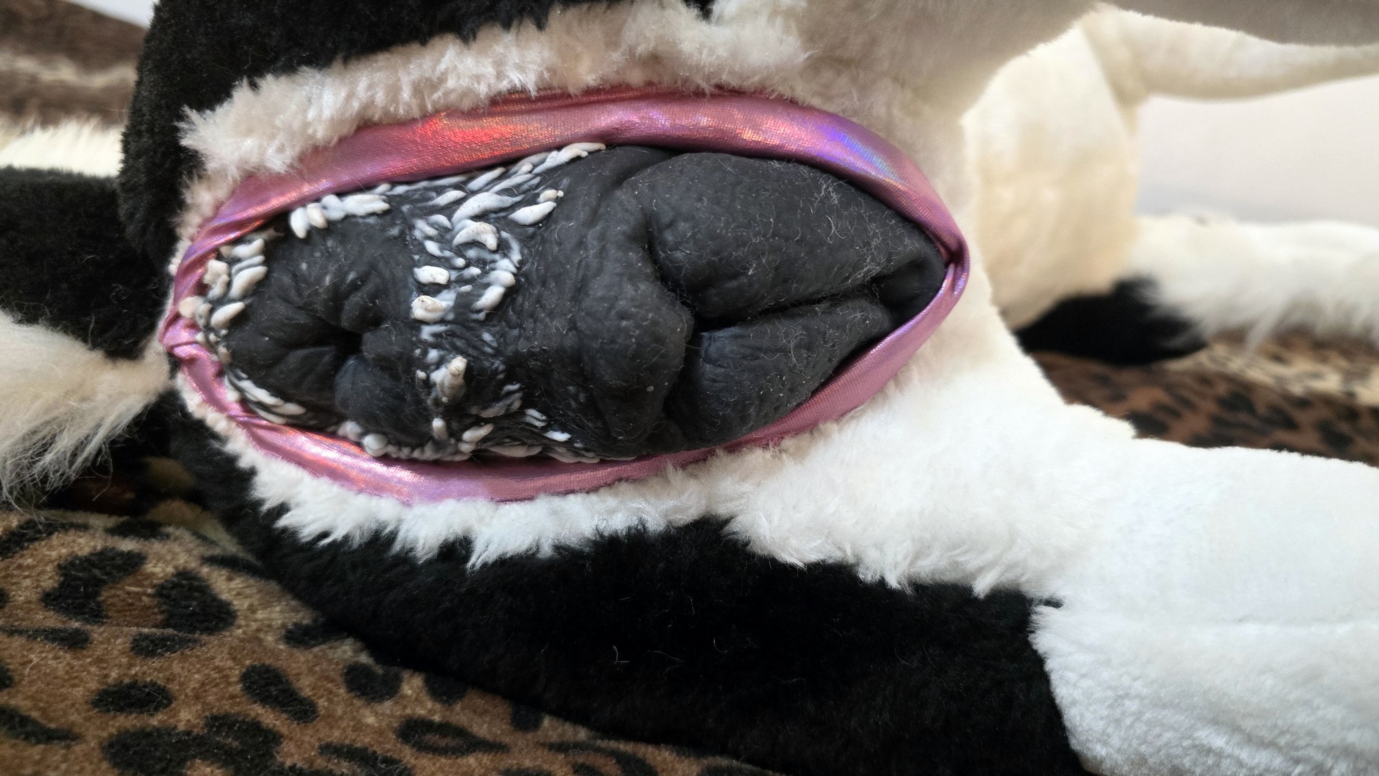 Modded with a pussy SPH using metallic pink fabric and sized to fit the dual dog toy from American Meat.